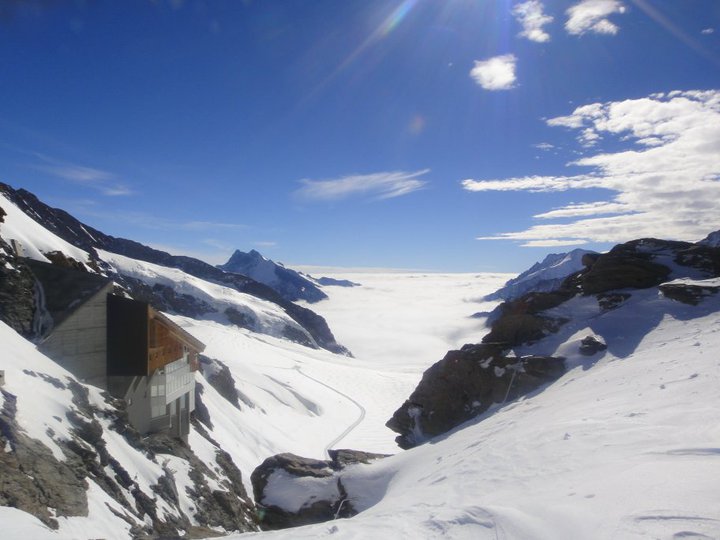 The first train takes you about half way up the mountain and you must transfer to the Jungfrau Railway at the Kleine Scheidegg stop . Both trains stop numerous times during the journey, where you can jump off and enjoy different hiking paths and scenery. It was a few stops after the transfer when I noticed myself feeling out of breath and slightly drugged…. yep, I was feelin’ the effects of the change in altitude…. Suddenly an overwhelming fear came over me, consuming my inner thoughts ” for the love of all that’s mighty, I’m gonna pass out from the altitude, fall face-first into a solid chunk of ice, violently knock my teeth out in the land of Swiss and have to find emergency dental implants…..” Things were about to get interesting.